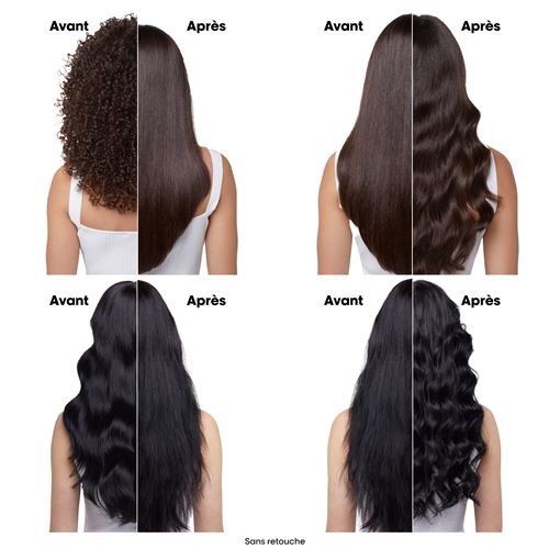 ² Prueba instrumental: rotura del cabello medida tras 15 pasadas de Steampod 4 vs. Steampod 4 sin peine ni vapor. Prueba realizada en cabello muy rizado.